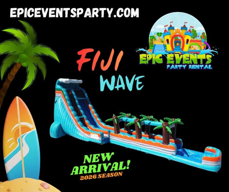 🎈 If you’re searching for a 25ft inflatable water slide rental, tropical water slide, or summer party inflatable near you, the Fiji Falls Single Lane Water Slide delivers unforgettable height, splash-filled fun, and serious wow-factor. Perfect for hot days and high-energy crowds! ☀️💦